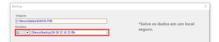 Por padrão o backup sempre será salvo na pasta do sistema, mas você pode definir isso manualmente selecionando o disco ou mudando o caminho padrão do backup.
