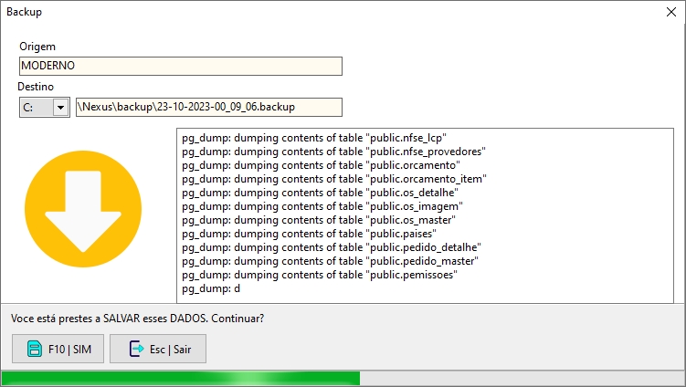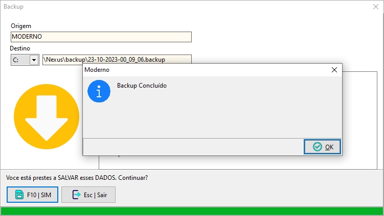 Para iniciar um novo Backup basta clicar na "F10 SIM"