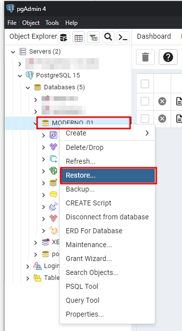 Migração de Base de Dados Restaurando a Base de dados do sistema Moderno: