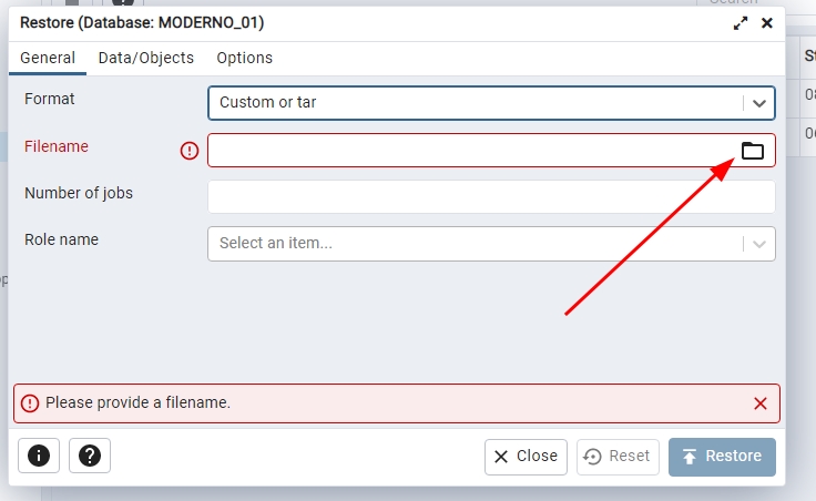 Vamos localizar o banco backup para restaurar em nossa base de dados vazia