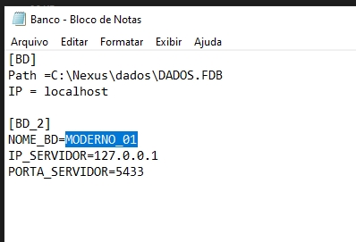 Altere o NOME_BD e salve. Após realizar essa operação o sistema será iniciado normalmente após atualização.