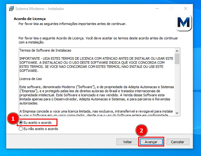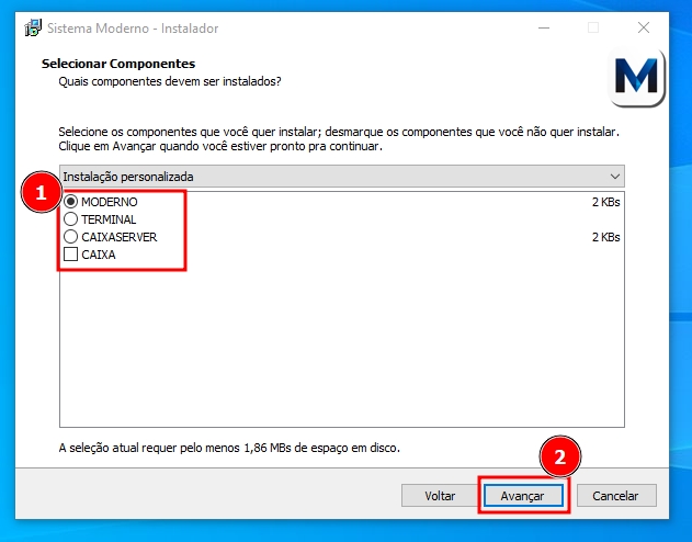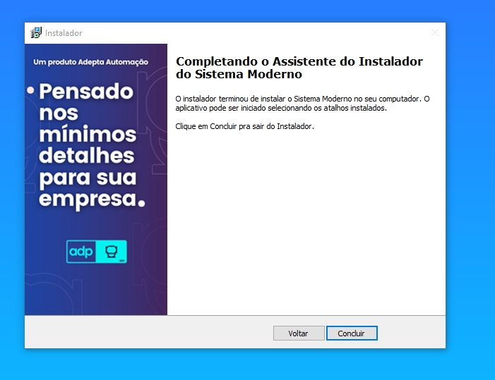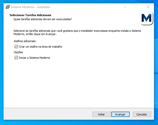 1. MODERNO: O instalador irá criar o Retaguarda na área de trabalho e configurar o gerenciador do Banco de dados com uma base de dados Zero pré-configurada.