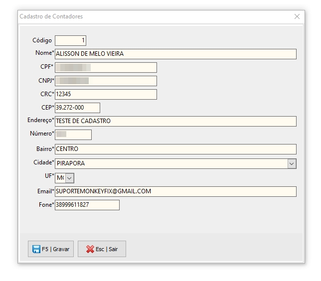 Clique em "Gravar" para finalizar e salvar as informações. Lembre-se de que é importante preencher todos os campos obrigatórios para que o cadastro possa ser criado com sucesso. Além disso, ter o CRC é uma exigência legal para a atuação de contadores.