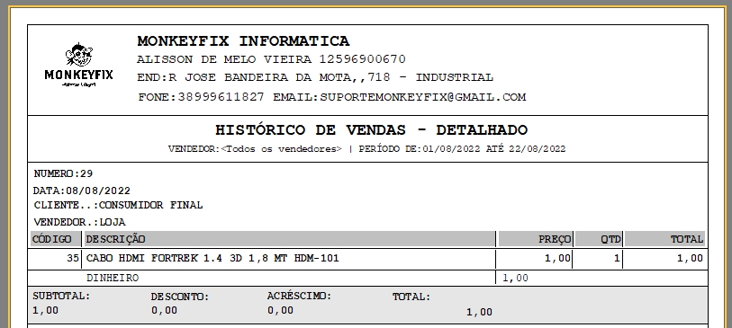 Detalhado: Você Terá um Relatório com Número, data, Cliente, Vendedores detalhes do item com preço, quantidade, total, além do código e descrição desse produto.