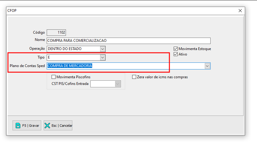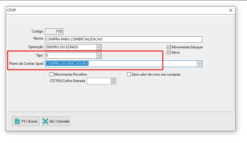 Feito isso vamos definir as configuração para o CFOP CFOP