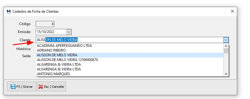 Na tela de Ficha de Clientes, clique em "F2 Novo" para criar um novo lançamento