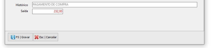 Clique em "F5 Gravar" para salvar a entrada do pagamento