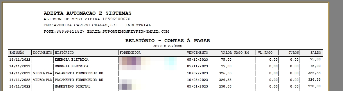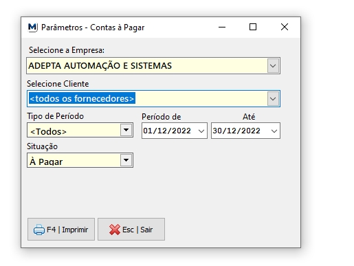 Rotina: Financeiro > Relatório de Contas à Pagar