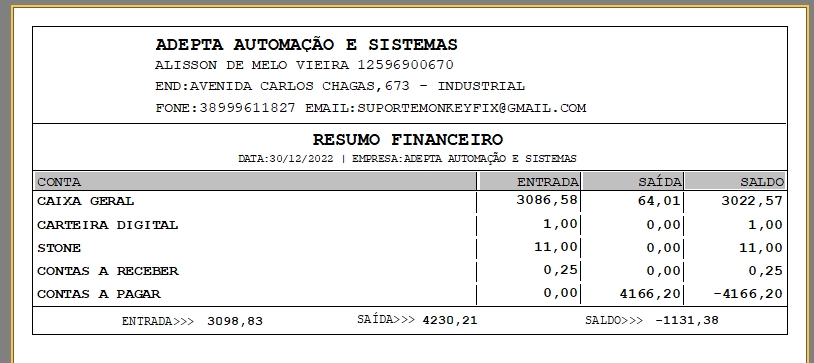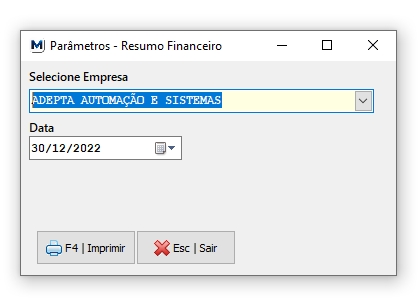 Rotina: Financeiro > Relatório Resumo Financeiro Por Conta