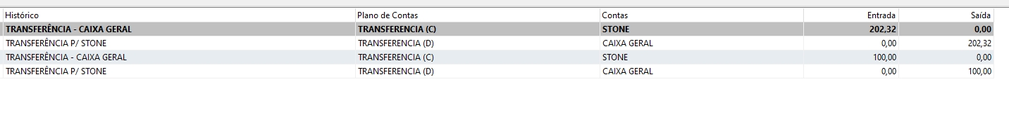 A movimentação de transferência será registrada no Livro Caixa, onde será possível visualizar todas as operações realizadas no sistema.