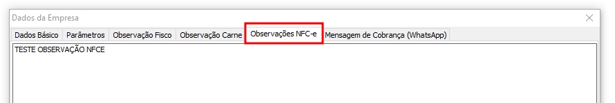 Se estiver emitindo uma NFC-e, é necessário selecionar a aba "Observações Nfc-e" e adicionar os dados que precisar.