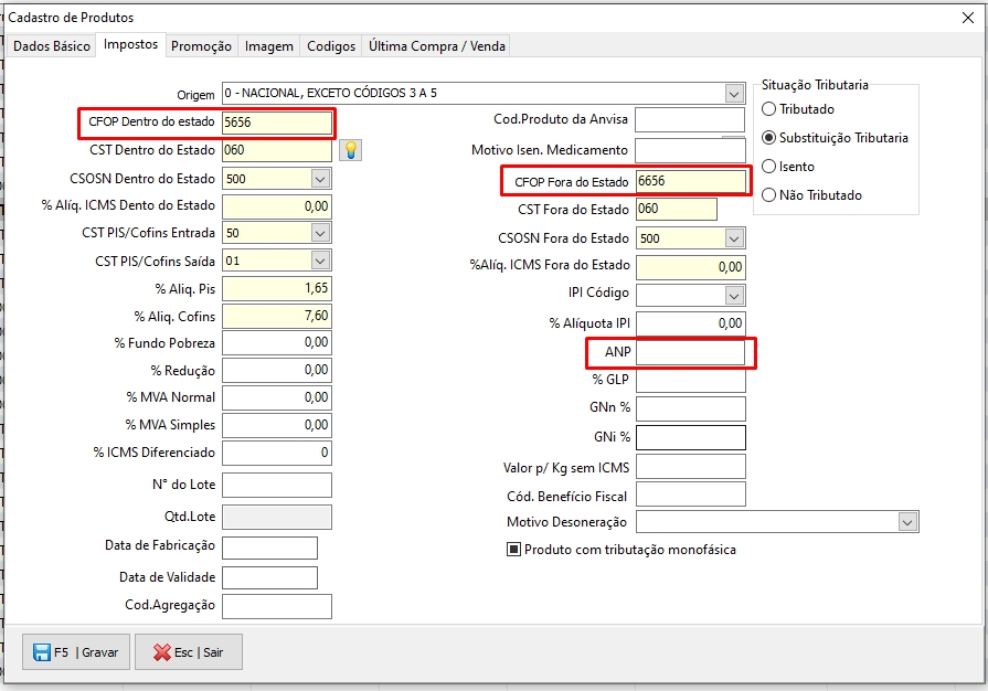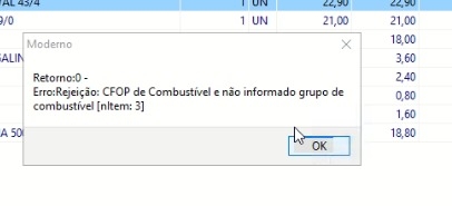 Rejeição CFOP de Combustível e não informado no grupo de combustível