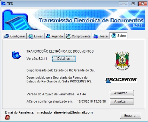 Clicar no botão sobre e atualizar a versão do programa de envio do TED.