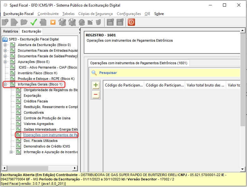 Depois vai em informações Gerais (Bloco 1) -> Operações com instrumentos de pagamentos eletrônicos