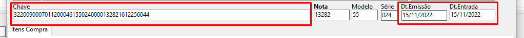 Informe a chave da nota, a data de emissão e de entrada, os outros campos serão preenchidos automaticamente.