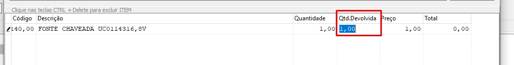 Feito isso, vamos ir até os produtos e colocar a quantidade devolvida apenas nos produtos que serão devolvidos.