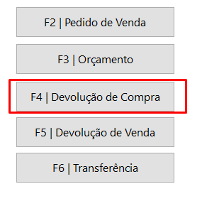 Clique em "F4 Devolução de Compra"