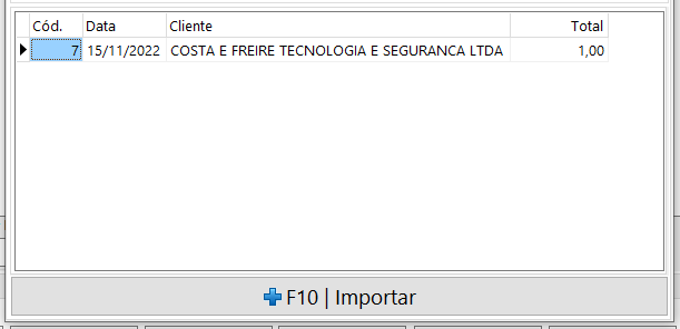 Selecione a Devolução e clique em "F10 Importar"