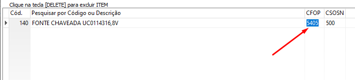 Altere o CFOP do item para um CFOP de devolução de Mercadoria