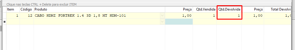 Altere o CFOP do item para um CFOP de devolução de Mercadoria
