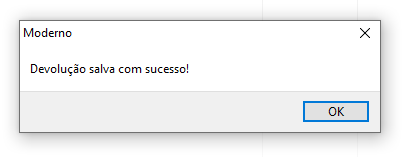 Todas as devoluções ficam registradas na tela principal com as informações de data, cliente e valores.
