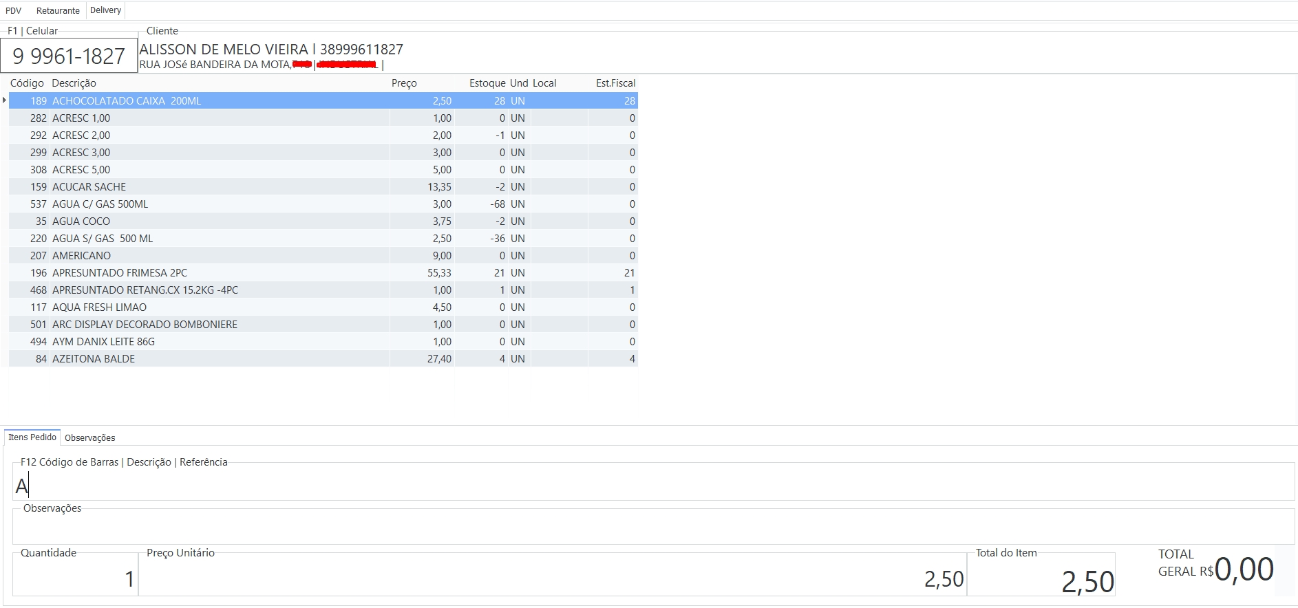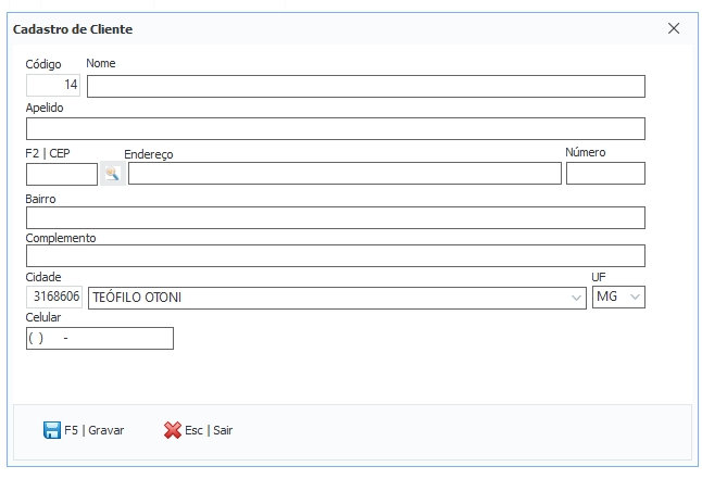 Ao Informar o telefone do Cliente, será aberto uma Janela para cadastro do mesmo que será registrado para as próximas compras: