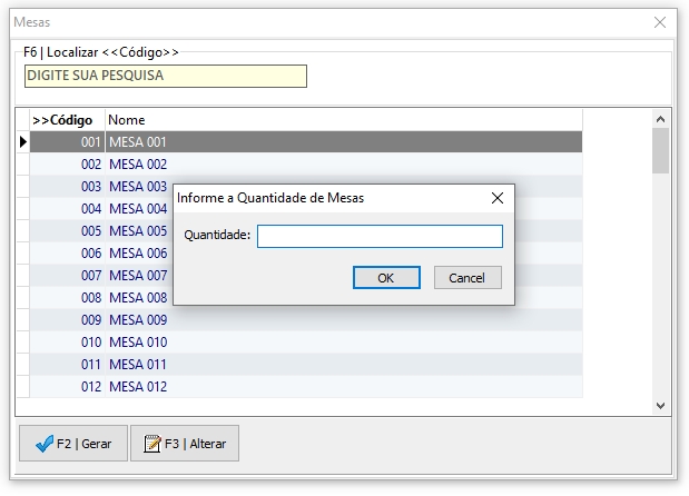 O primeiro passo é realizar a geração da quantidade de mesas ou comandas do restaurante.