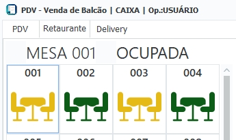 Para selecionar uma mesa para lançamento você pode clicar sobre ela até ficar amarela, ou apertar a tecla Ctrl + N, e iniciar os lançamento normalmente. Lembrando que você pode atualizar a lista de mesas clicando em Ctrl + M.