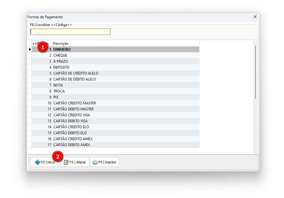 Entre na forma de Pagamento através do Caminho: Administrativo > Formas de Pagamento;