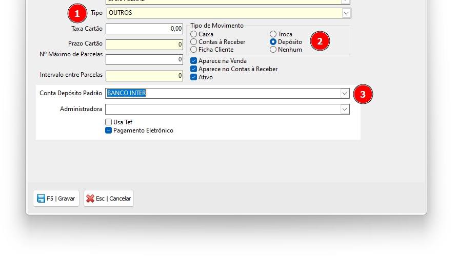 O primeiro passo é configurar as formas de pagamento para reconhecer a venda como uma entrada de depósito.