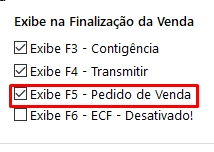 Selecione Exibir Pedido para aparecer a opção ao finalizar a venda.