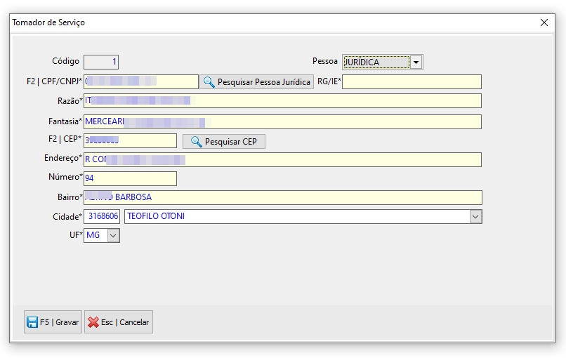 Feito isso, preenchido todos os campos basta clicar em "F5 Gravar" para salvar os dados.