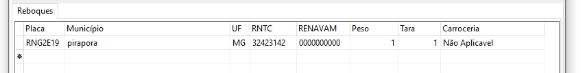 Preencha o Reboque com as informações do Veículo, lembrando que para pular os campos use a tecla "TAB"